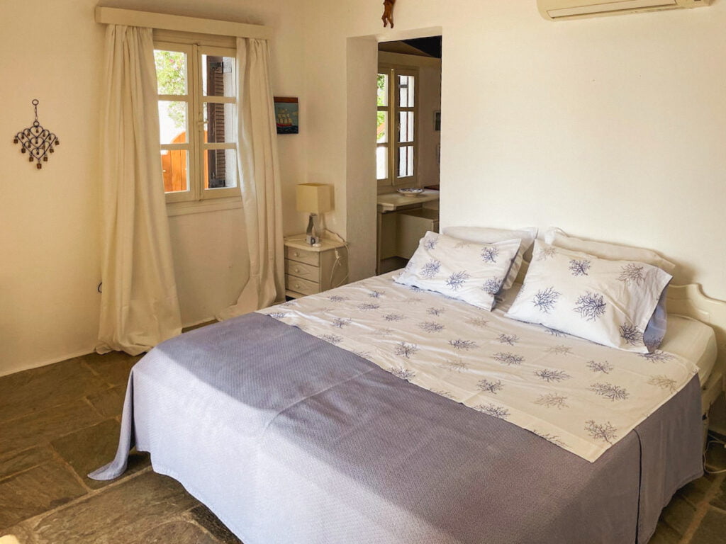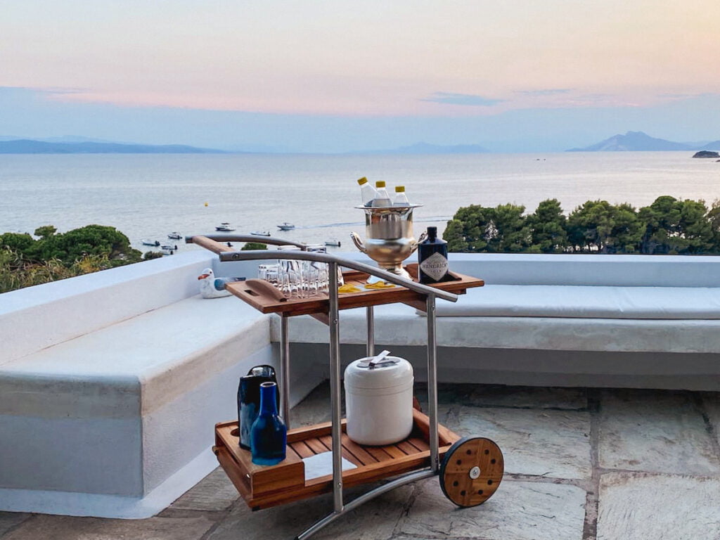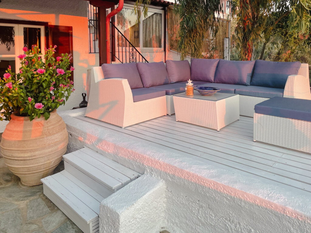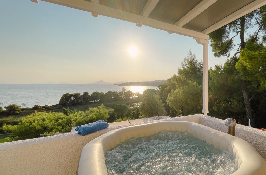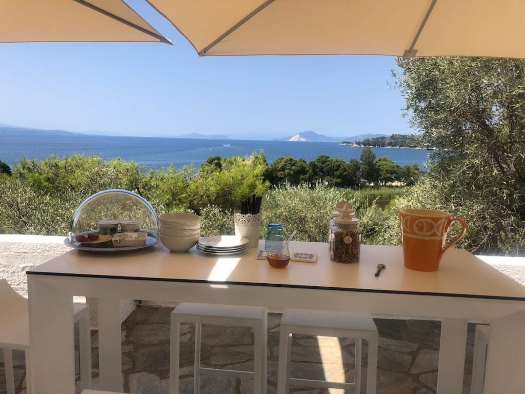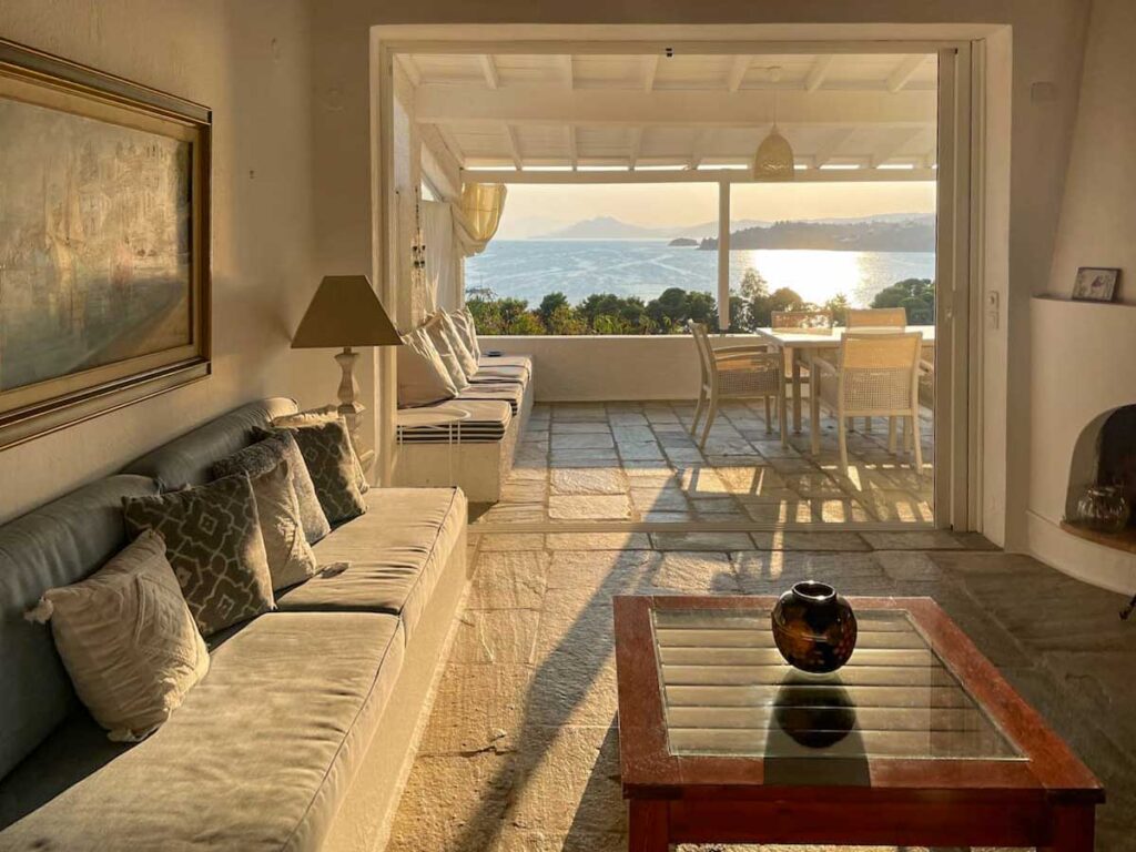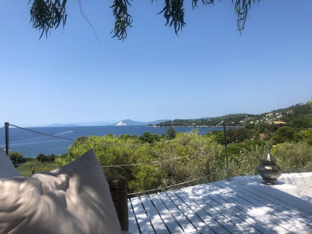 Die geräumige VILLA AGLAIA befindet sich an einem der schönsten Sandstrände auf Skiathos. Die Villa hat eine Hanglage, Süd-Westlage mit erstaunlichem Sonnenuntergang. Voller Meerblick von allen Zimmern. Die Villa erstreckt sich über 3 Wohn- und 4 Terrassenebenen. Der Strand ist über Treppen direkt über den privaten Garten erreichbar.