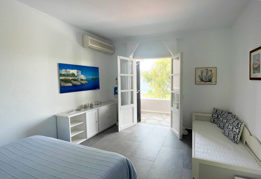 3 Schlafzimmer, alle mit Meerblick und Terrasse und eigenem Bad/WC, Wohnzimmer, Küche, 4 Terrassen mit verschiedenen Ess- und Loungebereichen. Der Strand mit Wassersport-/Verleihboot ist über eine Treppe durch den privaten Garten erreichbar