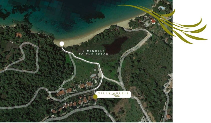 Die VILLA AGLAIA liegt nur wenige Fahrminuten vom Flughafen entfernt und ist somit in kürzester Zeit erreichbar. Den traumhaft-schönen Sandstrand erreicht man in nur 5 Minuten zu Fuss.